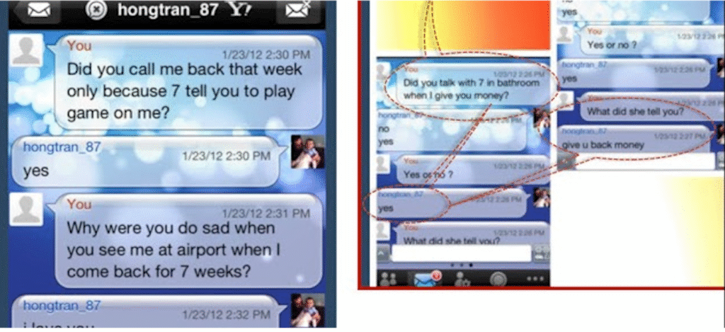 After I returned to America with my son in late 2011, I was able to get Hong to admit to certain events that took place while chatting with her on Yahoo Messenger. This only lasted for a few days before her “Owners” found out and put the fear of God in her, and she didn’t give any admissions after that time. I chatted with her in broken English because she understood better, which should explain my incomplete sentences in the messages as I conversed with her.