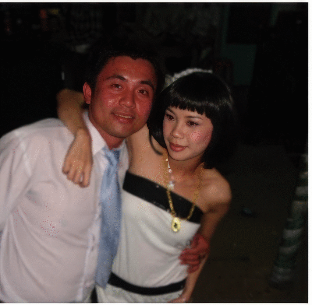 “7” was the leader and Boss to all the girls; as I stated previously, she ended up marrying a Chinese Triad named John (his AKA) that lived part-time in Hawaii and liked computers like me, so we hit it off pretty good. John would do things like ride with me in the Taxi back to the Airport when I went back to Vietnam, insist on paying for the Taxi, and even walk me inside to make sure I got checked in OK. They have a way of making you feel special. I also think it was done to assure they knew where I was and who I always talked to in order to ensure their scam would never be discovered. The fact that he was a Triad was quickly forgotten and overlooked since I genuinely felt like they cared about me like family. I’m not entirely naive; I knew that they liked me for my money and what I could do for them, but that was OK with me because I didn’t feel like it was the most important reason. They know how to make you feel loved, especially when you can’t speak to 99.9% of the people you meet, and all your friends and family are 8000 miles away. They know that you are lonely and feeling out of place. That dynamic makes you a prime target for their scam technique. Below is a picture of John and “7” at their wedding.