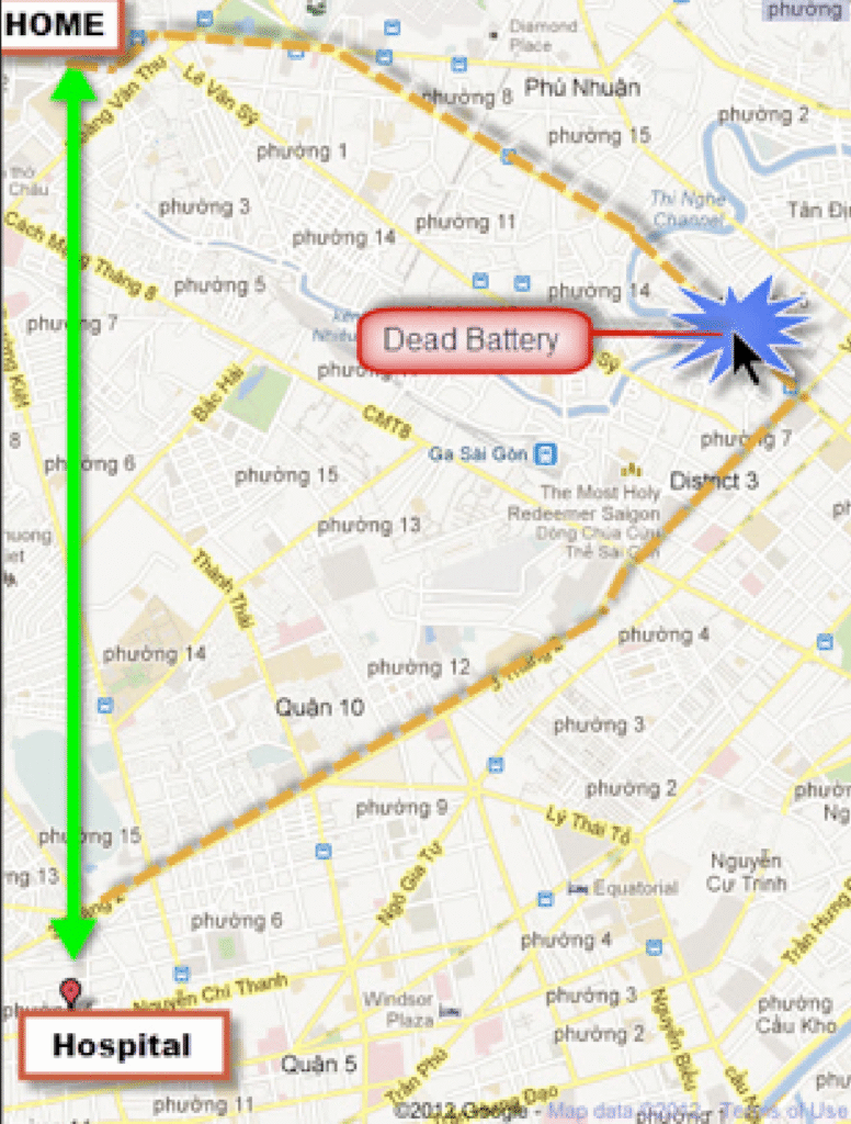 The route I drove from point A to Point B from my house to the hospital that night is pictured below. I lived at the spot the arrow points to on the top of the map and the arrow on the bottom points to the hospital we were at. I didn’t know how to get there; if Hong had passed out, we would have been screwed, and she and my unborn son would have died for sure because I had no clue where to take her.