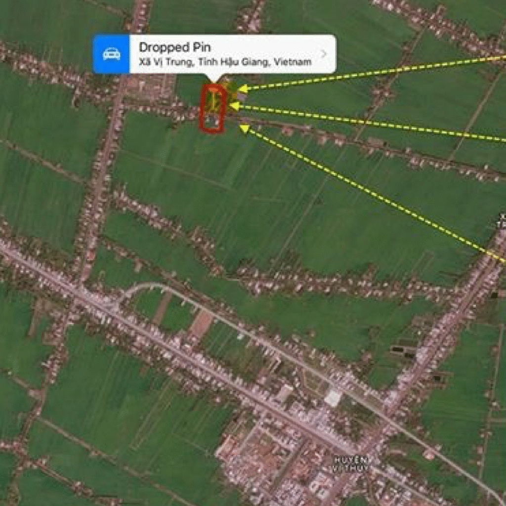 Below on the right is a map that shows where Hong’s family lived in Vi Thanh, Vietnam. The “1” arrow was her father and Uncle’s houses and where we had the wedding. The “2” arrow is the prison where Hong said Americans are and the prison where the Warden is also good friends with Hong’s Father, who once scolded Hong for not framing me sooner, which I found out six months later. The other two yellow blocks are where her other Aunts and Uncles live.